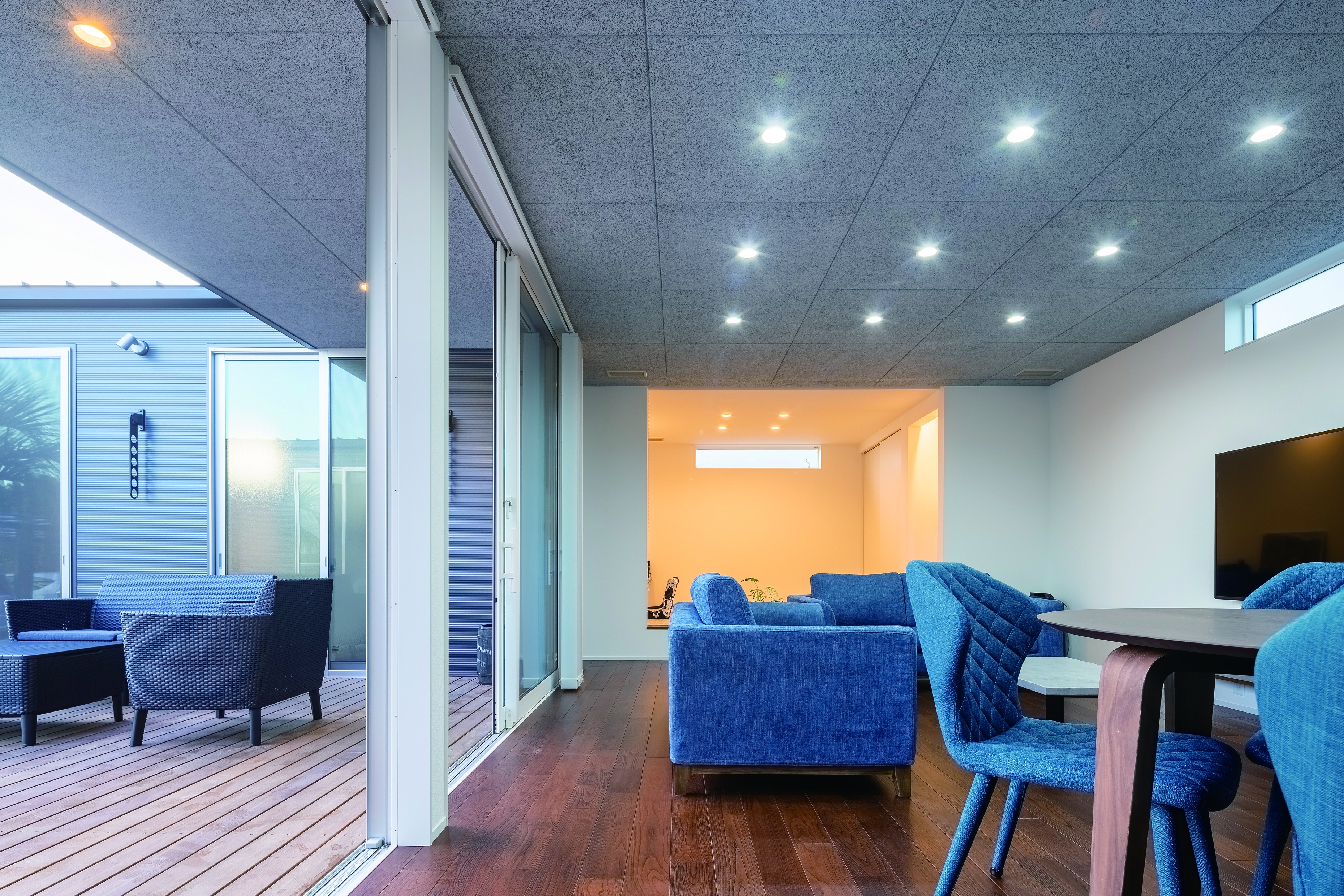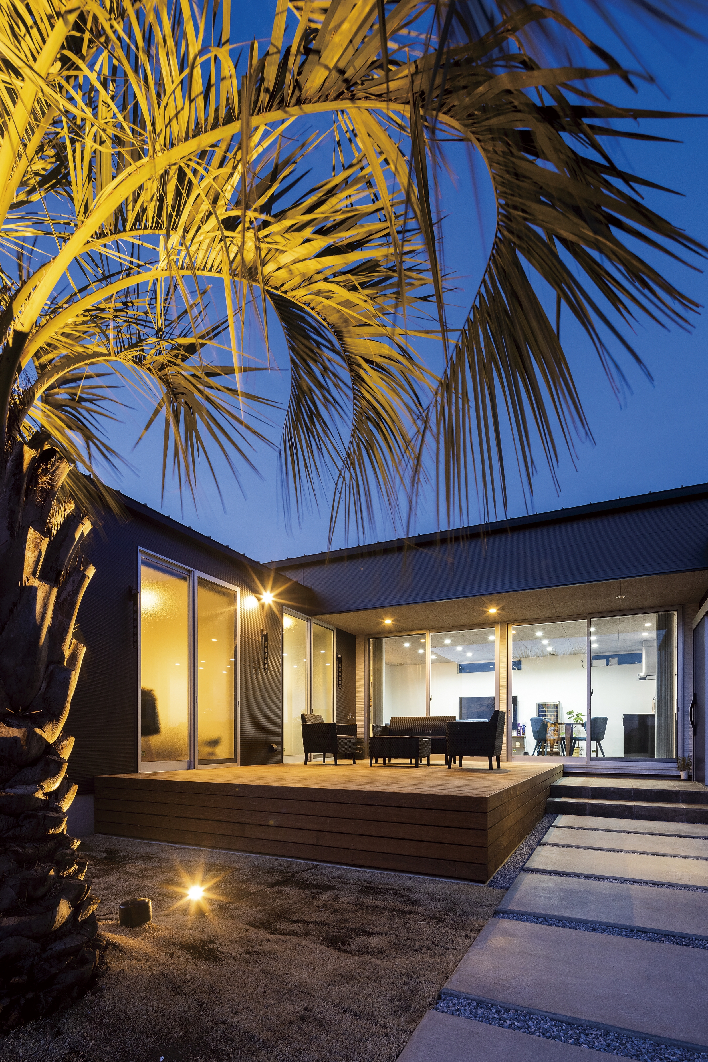 素材が光るコの字型の平屋